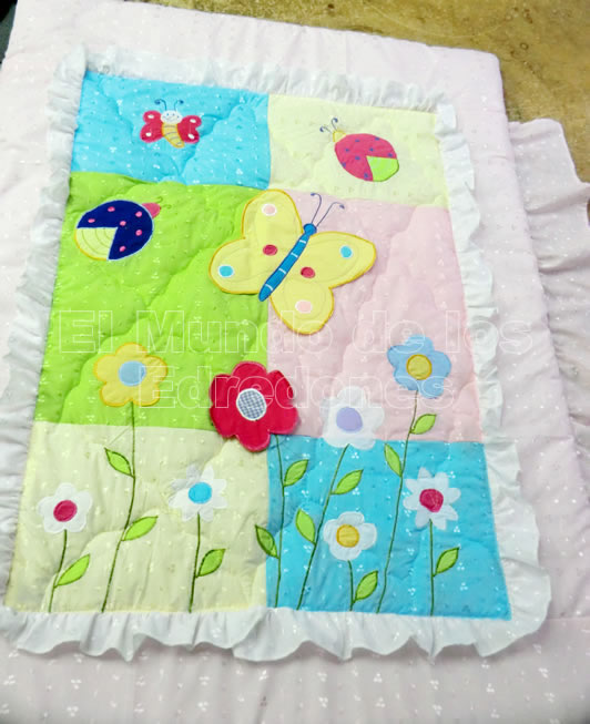 - Los dibujos de los edredones de bebes son bordados con aplicaciones de telas.